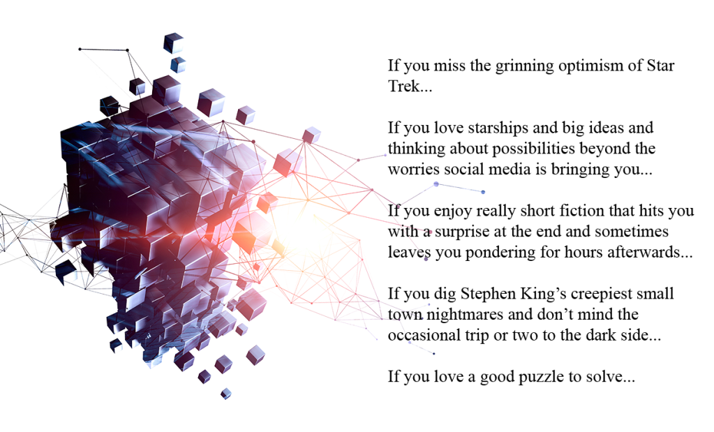 We went live just in the past couple of weeks. I’d be incredibly honored if you clicked over and took a look. It’s a collection of flash fiction and short stories, compiled such that the chapter endings include vignettes that collectively pose a riddle. The whole work is a puzzle to solve. Hopefully, it’s one that brings a smile to your face when it’s worked out (or if you cheat and read ahead!).