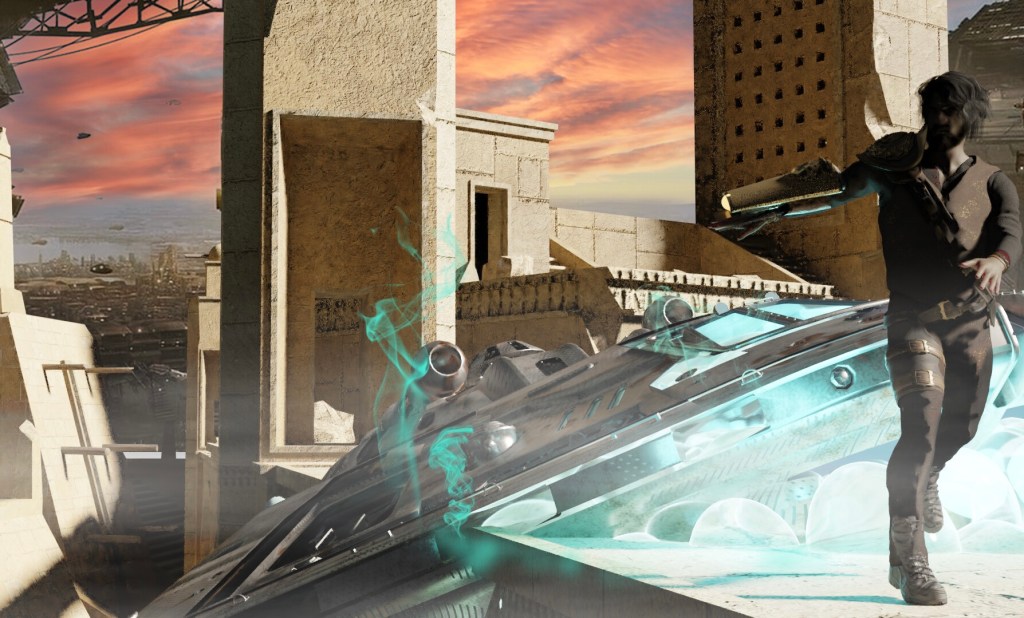 A carbine gunslinger on the run. A Dirt Wraith rises, ghost-like through the very walls. Its quantum foam bubbles sizzle as loud as a waterfall. They knew he was here all along. She lied. And that will cost her. They’ll have traps all in the building, every corridor. Watchmen are patrolling the streets below. If there’s a Dirt Wraith, then maybe they’ll have something deadly down there he can seize and turn against them. Time is short, and they are many. He’ll have to be fast and unpredictable.