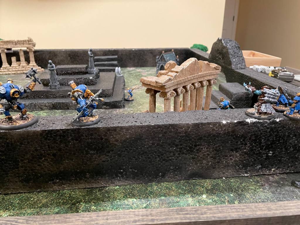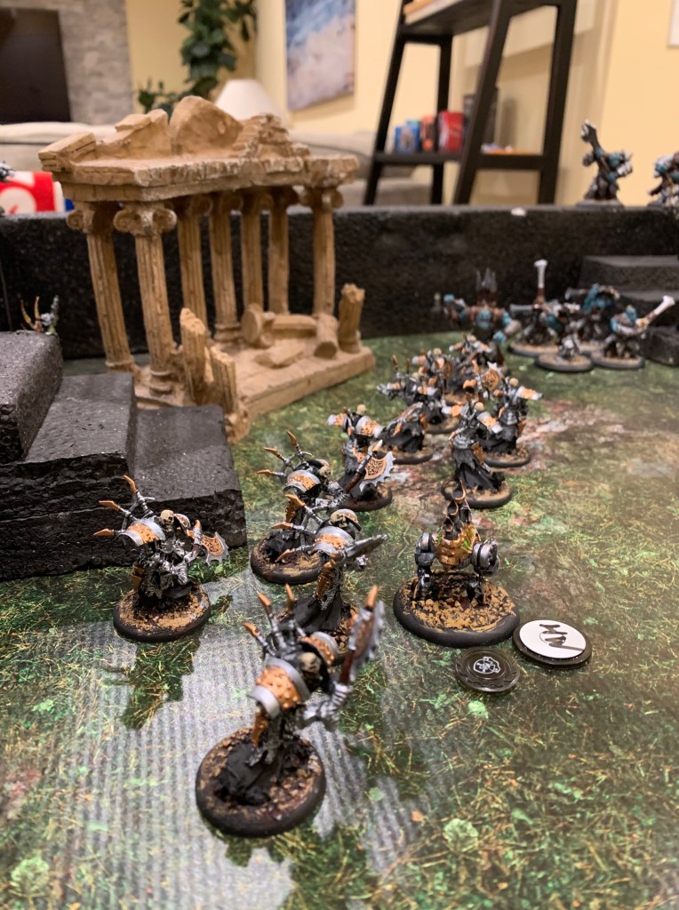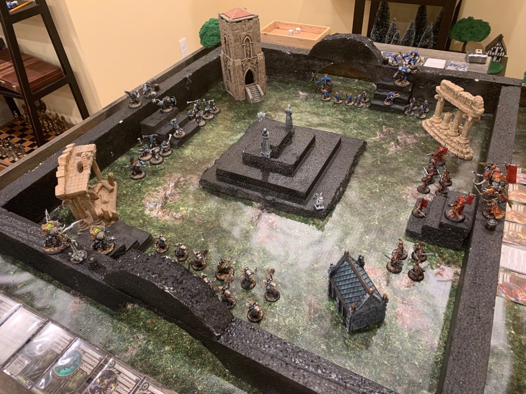 When the COVID-19 quarantine started, I worked up a beast of a follow-up I called The Battle Of Four Armies. I’d done a labyrinth on the table, and a temple, and was thinking this time I’d go all-out and add in another element to push myself: a compatible sister game with its own set of rules. (I knew Warmachine, but I had to pick up a Hordes starter set and learn its rules as well to even make all this work.) Both these fantastic games are from the good folks at Privateer Press. Make sure you support them by the way, they’ve got something special going on with those clean, popping rulesets.