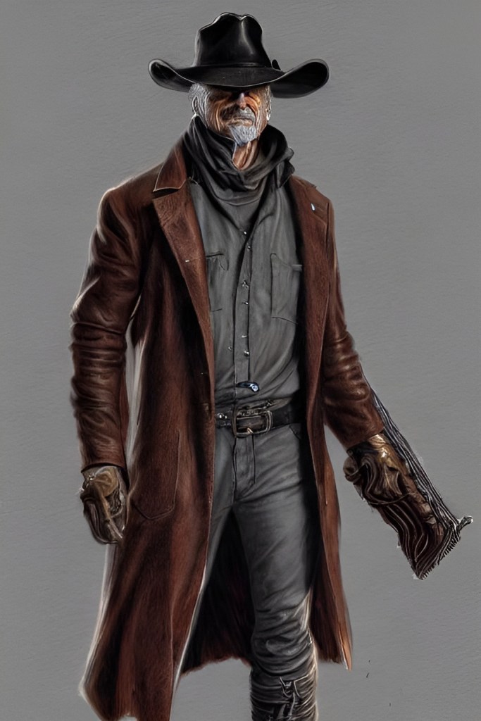 4. I still needed that gunslinger though, and went back into the cycle loop trying various iterations and prompts to get a guy in the right posture and wearing the long, gunslinger coat I was looking for.