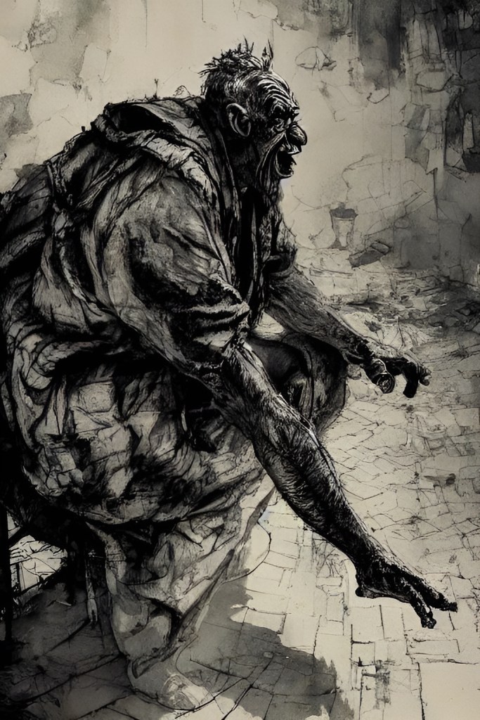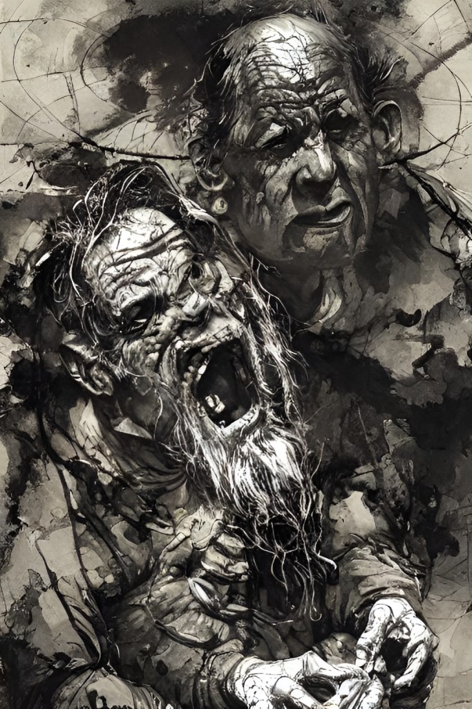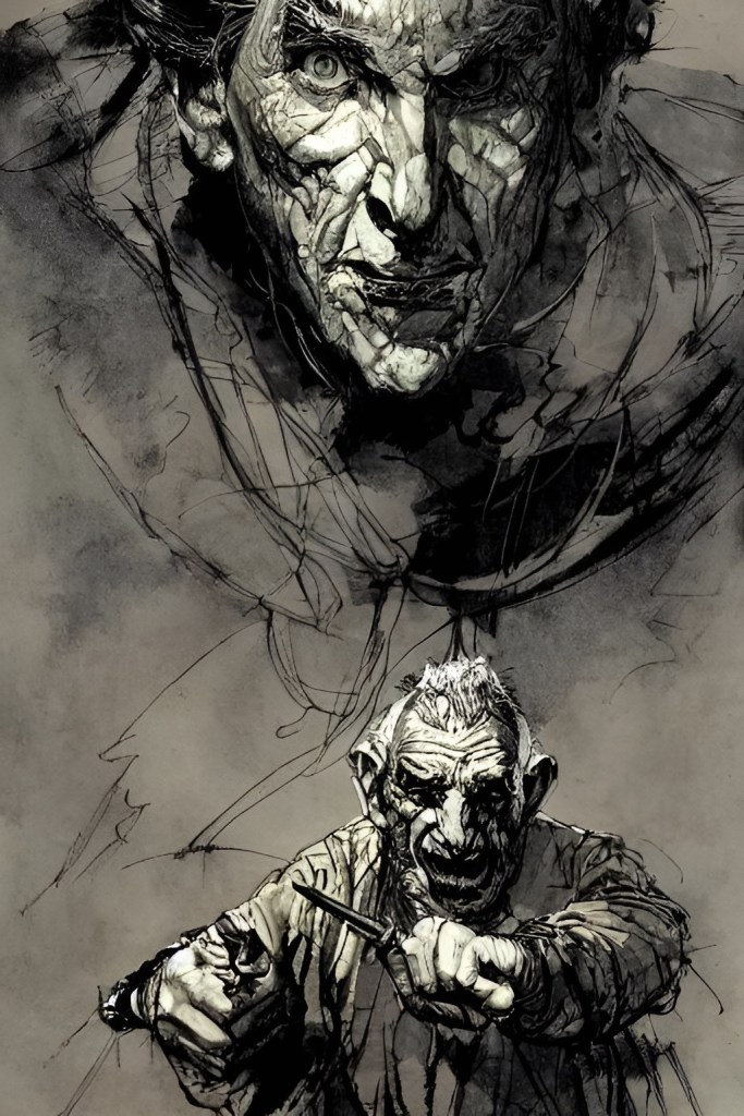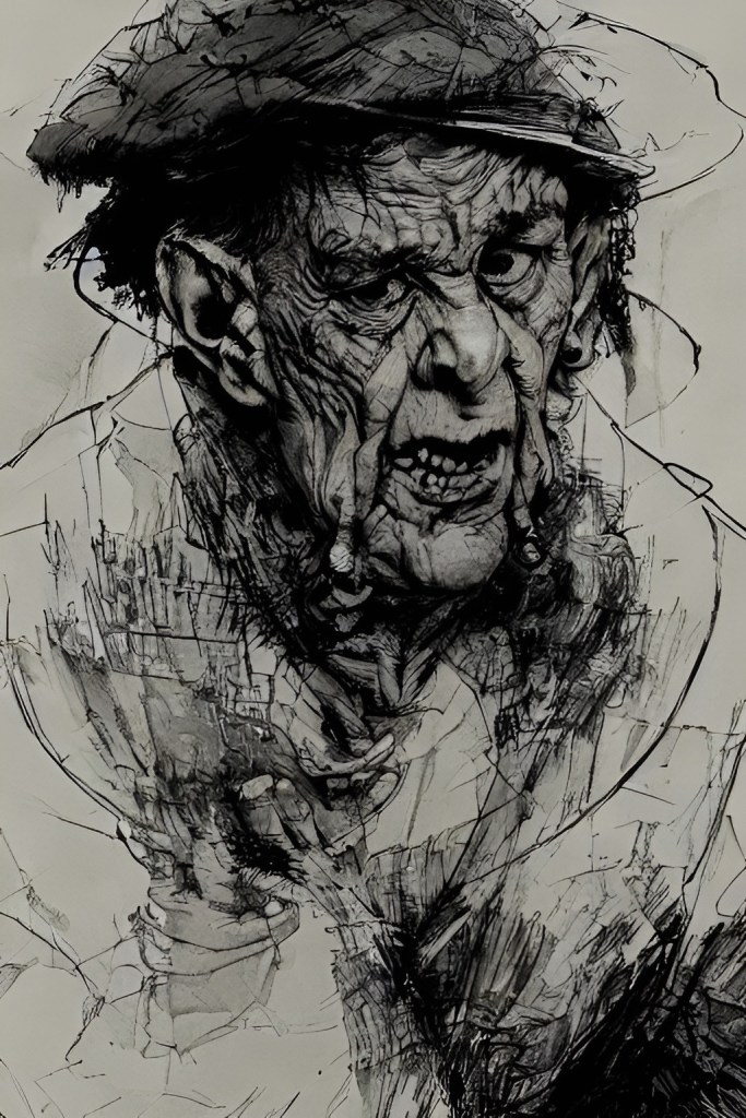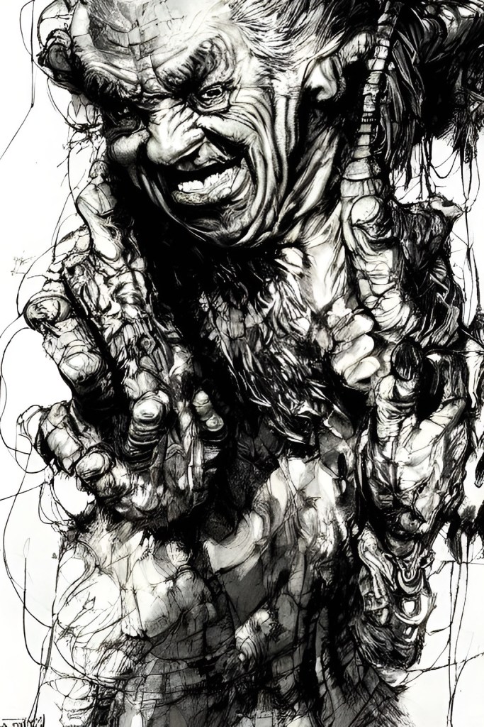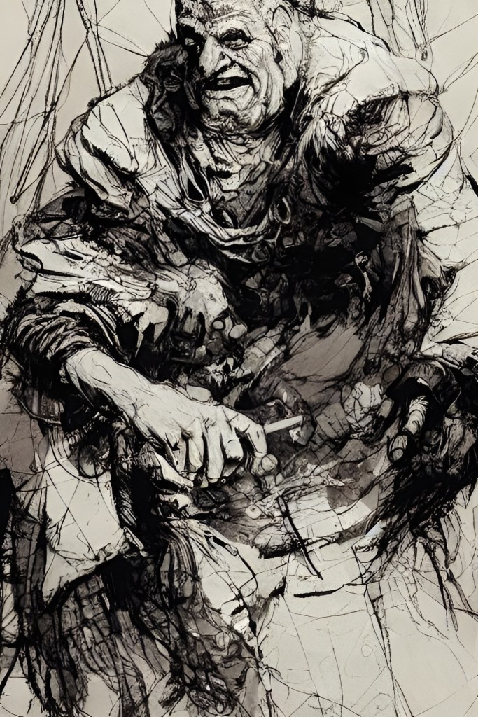 This is the character I eventually went with. They can turn out with three arms and nightmarish faces, the fingers often run together and look like tendrils. Seriously, the output isn’t always mind-blowing, but here at least I saw the outline I wanted and general textures.