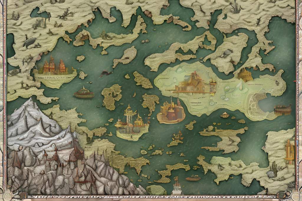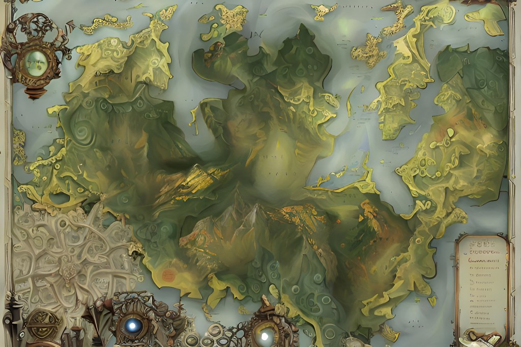 Finally, I was curious whether one of the many art generators out there, like Codeway’s Wonder app or Stable Diffusion can generate maps. And the answer is sort of. Here are some results as they were generated by Wonder without any editing whatsoever and based solely on precisely worded text prompts: