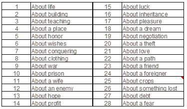 Ahhh…that was super interesting to me. Take a look at Table 1 to see what issues concerned these folks. Some of these are very telling of the times (“about prison”, “about hope”, “about a dream”, “about a foreigner”) but practically all of them are common to all of us and incredibly easy to understand why they concerned the book’s users a thousand years ago.