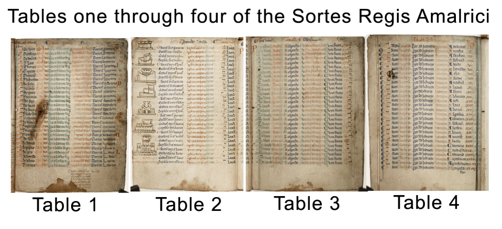 We’ll also have to recognize that big portions of the book in question are a bit irrelevant for our purposes here today, as its varied copies in various museums around the world bear somewhat different content and don’t all matter for those weird wheels or their function. No, the main event here is a subset of the book that Dr. Burnett prefers to name Sortes Regis Amalrici, meaning “The Lots Of King Amalric”.