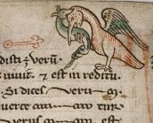 You can go to the Bodleian Library site here or to the British Library site here to take a luxurious look if you (like me) see the joy of perusing high resolution images of super old parchment documents and the little doodling pics in the margins like these: