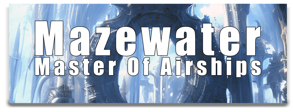 Mazewater: Master of Airships is a standalone story set in the Salt Mystic universe, existing at around 38k words of a planned 70-80k. The original notion was to introduce a new war marshal with the novel, which would lead the introduction of new playing cards in the Salt Mystic wargame for his faction. “Read the book, love the guy, go buy his cards.” Right?
