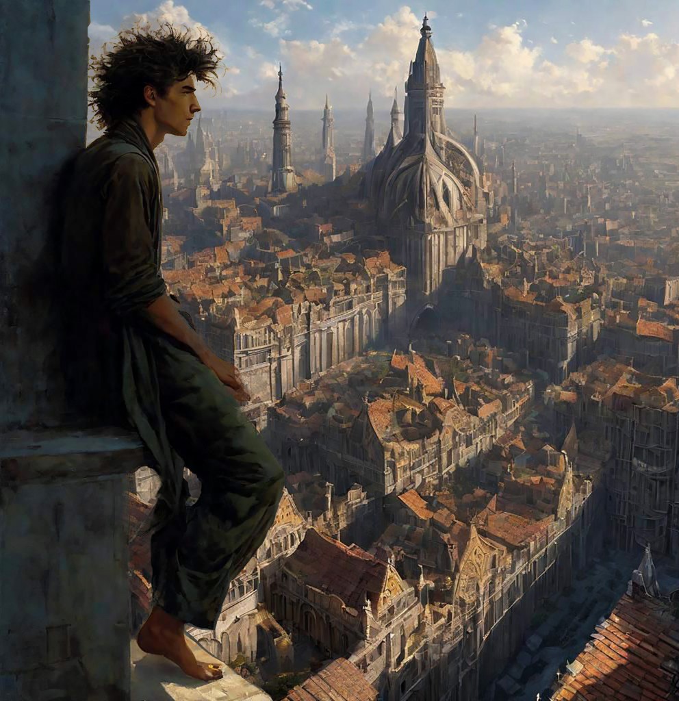 Right after I started writing the novel, I caught the flu – it was a nasty one with a fever that wouldn’t go away. One night I had one of the most vivid dreams I’ve ever had. I had been trying to envision what a city two thousand years old and comprised of a single enormous building strapped to a mountainside would look like from the inside (and getting nowhere).