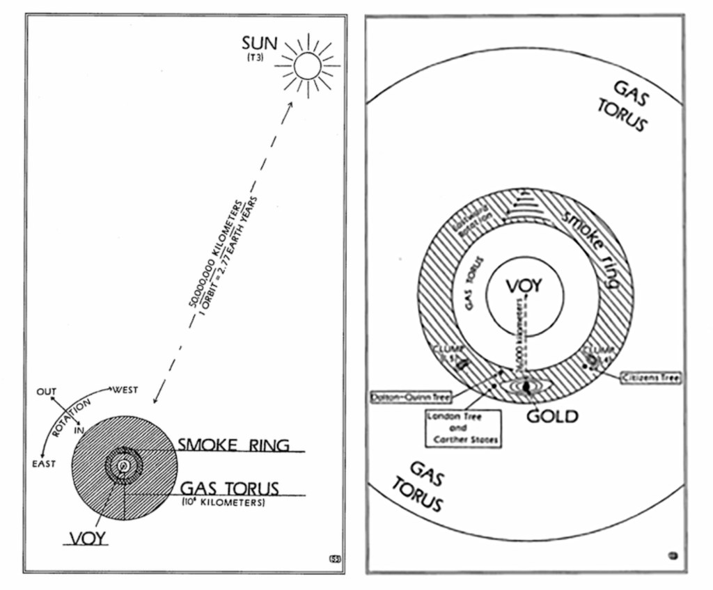Let’s head to a faraway binary star system where a neutron star (Voy) and a Sun-like star play gravity tug-of-war with each other, locking in a dead planet (Gold). The planet had a thick atmosphere once, but that’s being stripped away by the tidal forces making a stable doughnut-shaped gas torus that, believe it or not, is breathable and inhabitable within a specific zone.