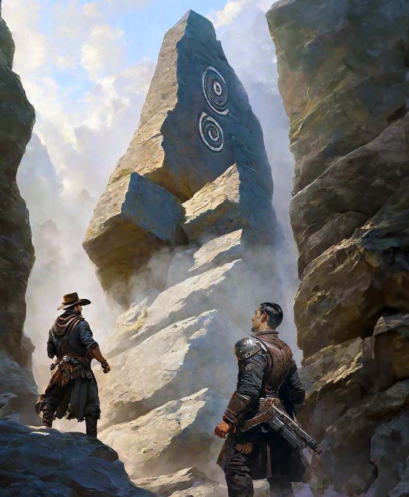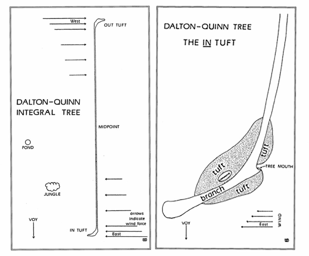 In the hazy blue-gray, you see the silhouettes of tall, thin people tied to lines and floating in the sky weightlessly, aiming harpoons at something among the trees of the jungle. It dawns on you that you can stand here atop this mighty tree limb and gaze upwards at them, but were you to climb this trunk, the pull of gravity would fade to nothing.