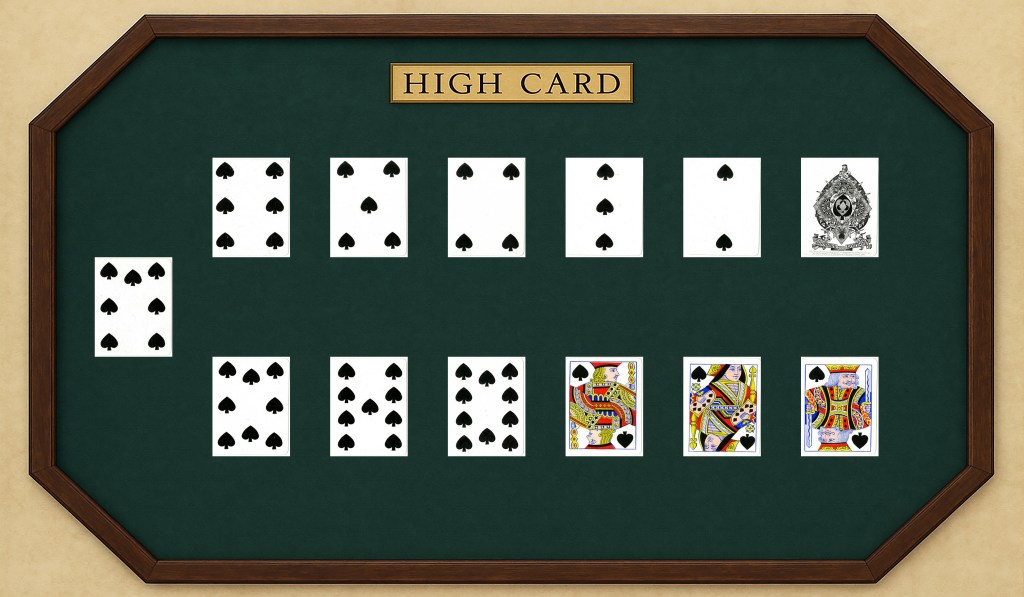 The plaque labeled “High Card” is a bet you can make that the second card will be numerically higher than the first card. Again, if you’re right, then the dealer pays you out however much you bet. Dealers can entice you to take advantage of that bet by upping the payout ratio (“High card’s paying out two to one next hand!”)