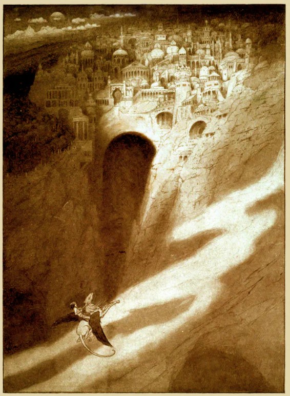 But this particular book of 14 stories though, The Book of Wonder (available free here), was a real game-changer. Most, if not all, of the stories first appeared in a lifestyle magazine titled The Sketch from 1910 – 1911, then were compiled into the single volume for publication in 1912. Taken together, they read like a series of dream-visions, and feel comfortable and sleepy, like they’re being told in a warm voice by a crackling fireplace. It’s a collection of short fantasy tales about strange kings, cities, gods, and wanderers whose desires—for wealth, beauty, knowledge, or escape—lead them into eerie, dreamlike adventures. The tales often turn on irony or fate, showing how wonder and curiosity can just as easily bring enchantment as loss, transformation, or quiet doom