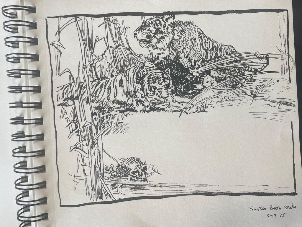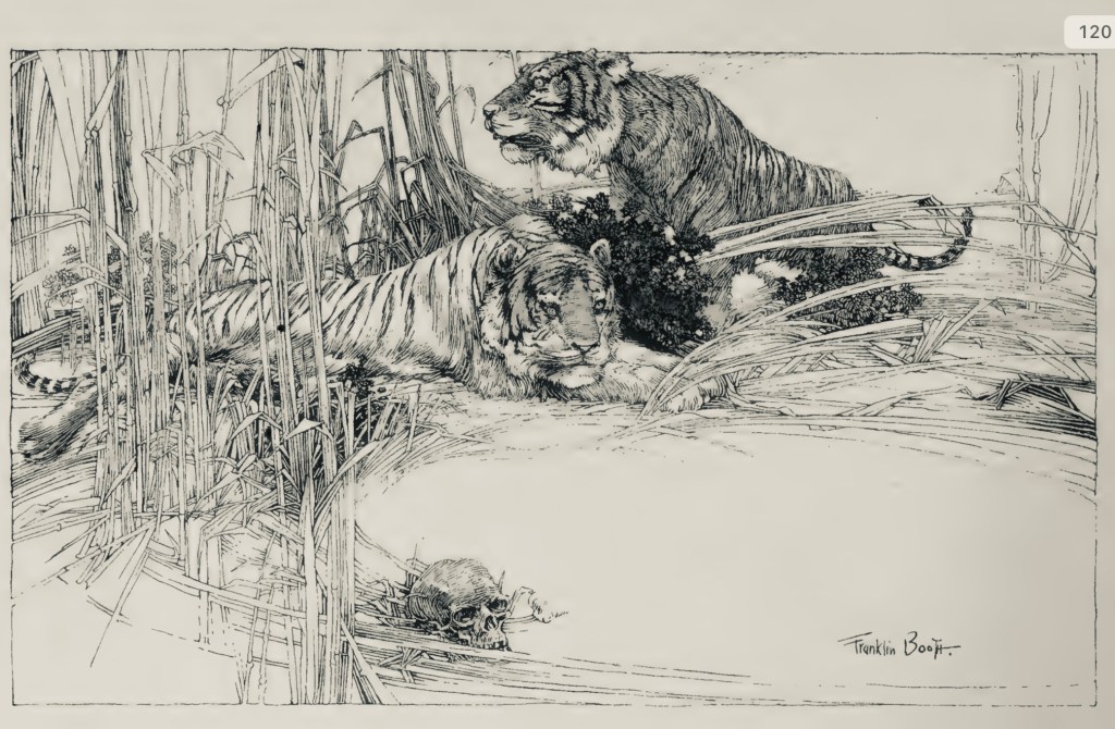 Here’s another study, by Franklin Booth – a real beauty he titled “Hunting The Tigers”: