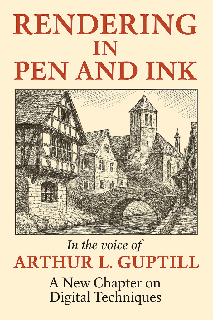 Written by Arthur Guptill, this is a classic instructional book on pen and ink drawing, widely regarded as one of the most comprehensive and authoritative resources on the subject. His writing style was patient, articulate, and he was clearly a master of clean, simple line work and exhibited craftsmanship in how he approached both drawing itself but also how he framed his instruction materials. The guy was a natural teacher.
