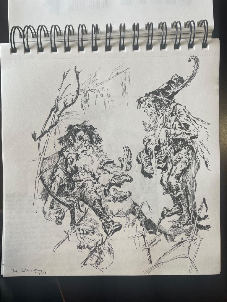 But it got me thinking that this idea of grungey ink drawings as interior art looks really great and could be a nice distinguishing factor in future Grailrunner books. So I started practicing and studying the great ink masters (which you can read about here) to hone my craft and work directly Pigma Micron and Pentel Brush Pen on paper. No blending modes, no AI bases, no 3d paintovers or stock image composites. No digital tricks at all. Just pen and ink and paper and the satisfying swoosh sound that makes.