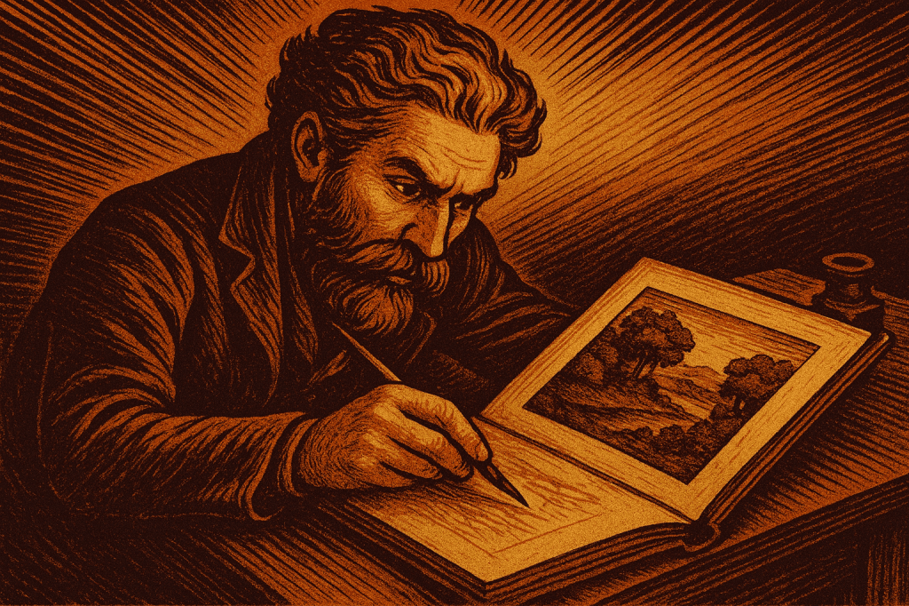 Anyway, we’re four articles in to a new series titled “Conversations from the abyss” where we use advanced AI tools like ChatGPT and also Suno music generation to bring back creators from the past for interesting debates, dialogues, or other entertaining diversions. Nothing for sale – all available free here on the site. It struck me this past week that it would be amazing if I could receive art critiques directly from Arthur Guptill as I’m practicing various bits and bobs I’m learning from the master studies and other practice drawings.