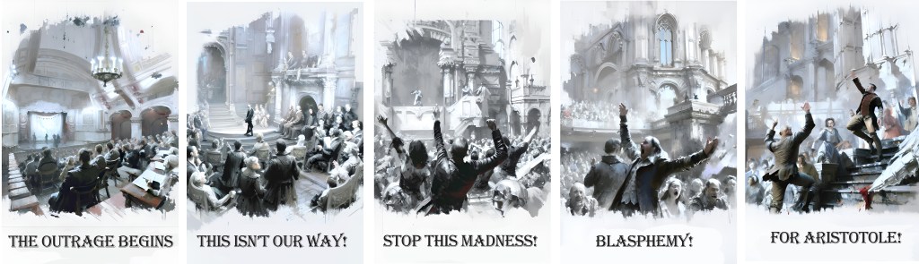 If you abided by these principles with your play, which was the norm for hundreds of years in Europe, then Aristotle’s intense study of impact and memorability and propriety assured you that you had a well-constructed play. Why deviate from that – you think you know better than Aristotle?