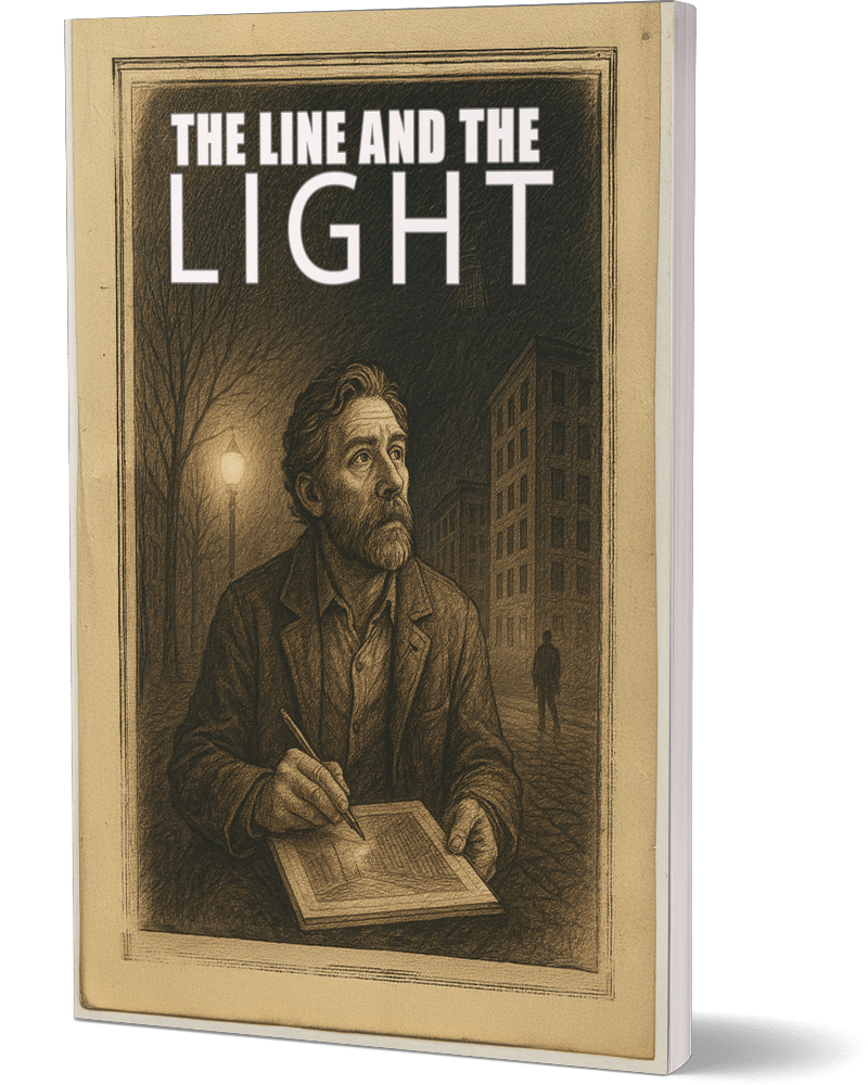 With surprisingly little coaxing, it produced an emotional, impactful story with a punch to your heart buried at its core that I didn’t give it as input at all. It’s called “The Line and the Light”, portraying an aspiring pen & ink artist in Kansas City who is grieving deeply and trying to process that grief through his art. Smash the cover button below to read it. Won’t take long, and might actually carry some meaning for you.